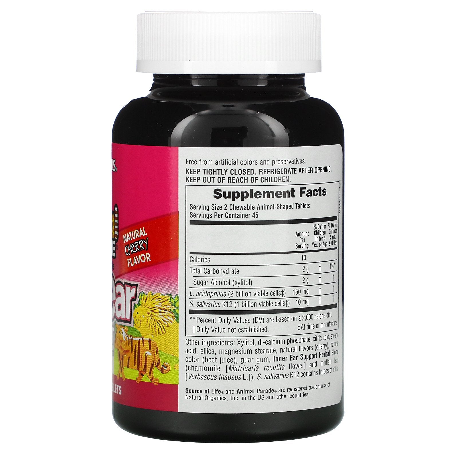 Natures Plus Source of Life Animal Parade Children's Chewable Inner Ear Support, 90 tabs.