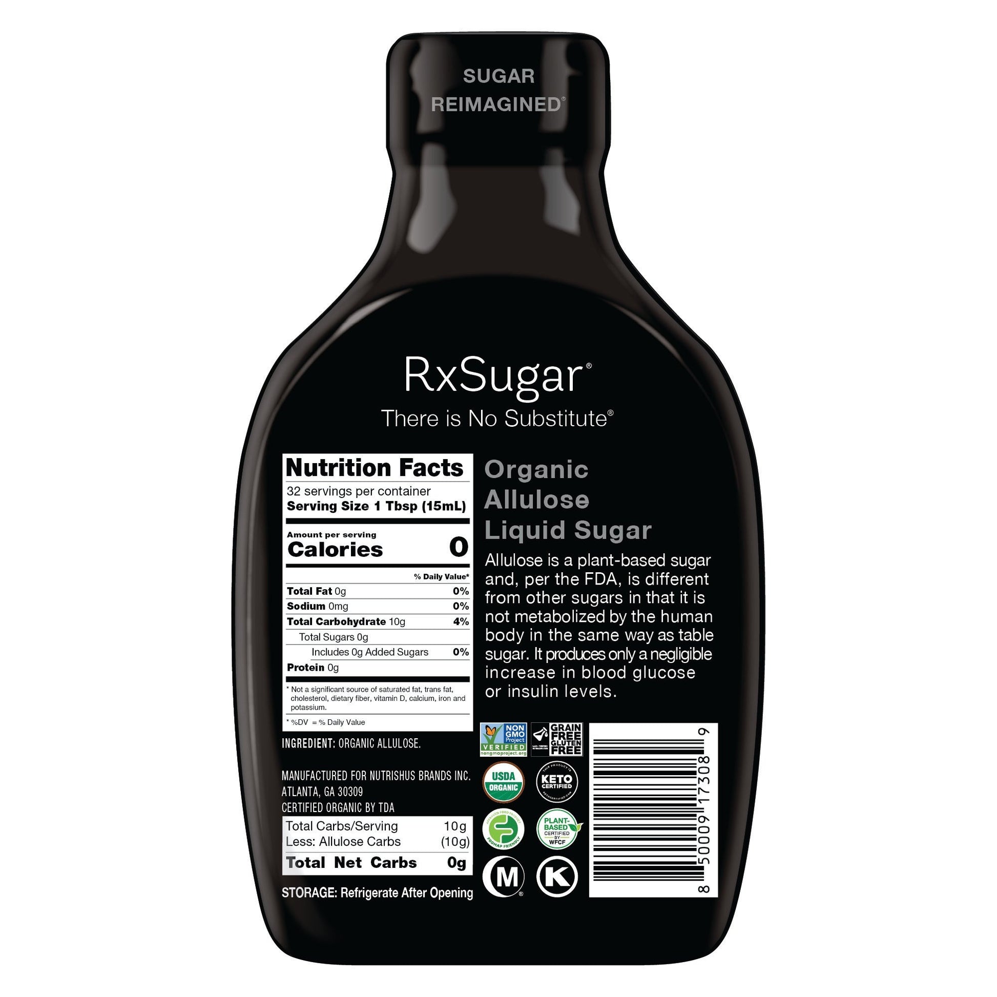 RxSugar Organic Allulose Liquid Sugar, 473ml.